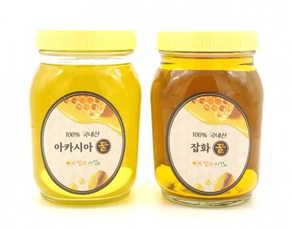 향이 좋은 아카시아꽃꿀과 영양이 풍부한 100% 잡화꽃꿀 세트입니다.